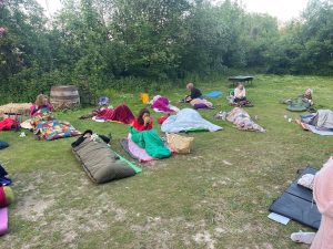 Open mind, Cup, Yoga mat, plate, knife, fork, spoon, floor bed, Blanket, sleeping bag;